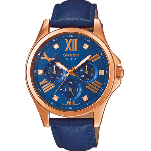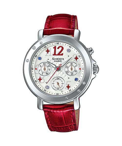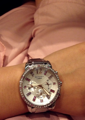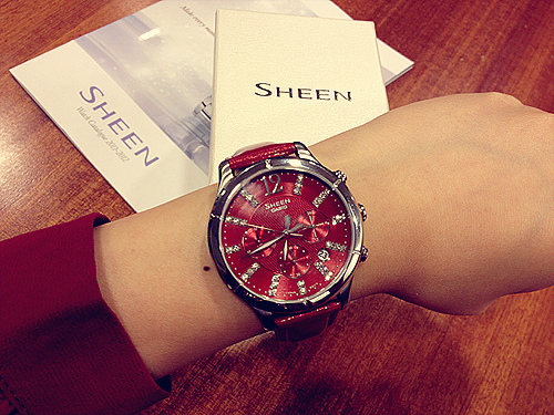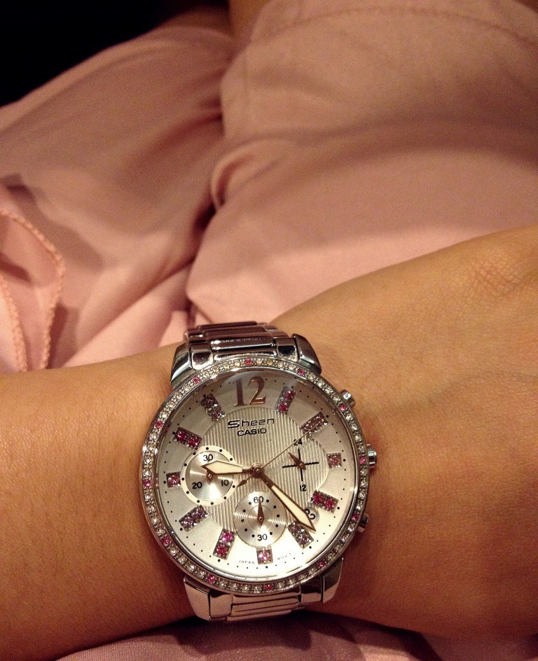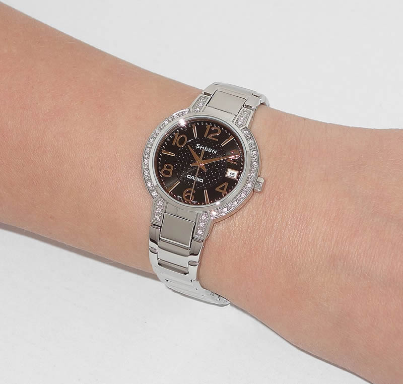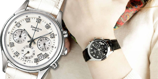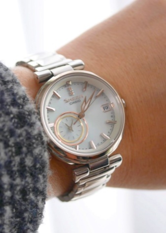 - The beautiful Sheen watch looks very impressive on the ladies' pen. They have a very elegant and sophisticated design, which is very different from traditional Casio products. Feminine accessories draw attention to themselves thanks to the elegant lines and beautiful color combinations. For example, the white dial with a silvery edging against the background of a red strap or a watch with a blue bracelet, equipped with gold details, looks just amazing. Belts in them can be metal or polymer. The lady who prefers any style in clothes and accessories will be able to choose the right product.