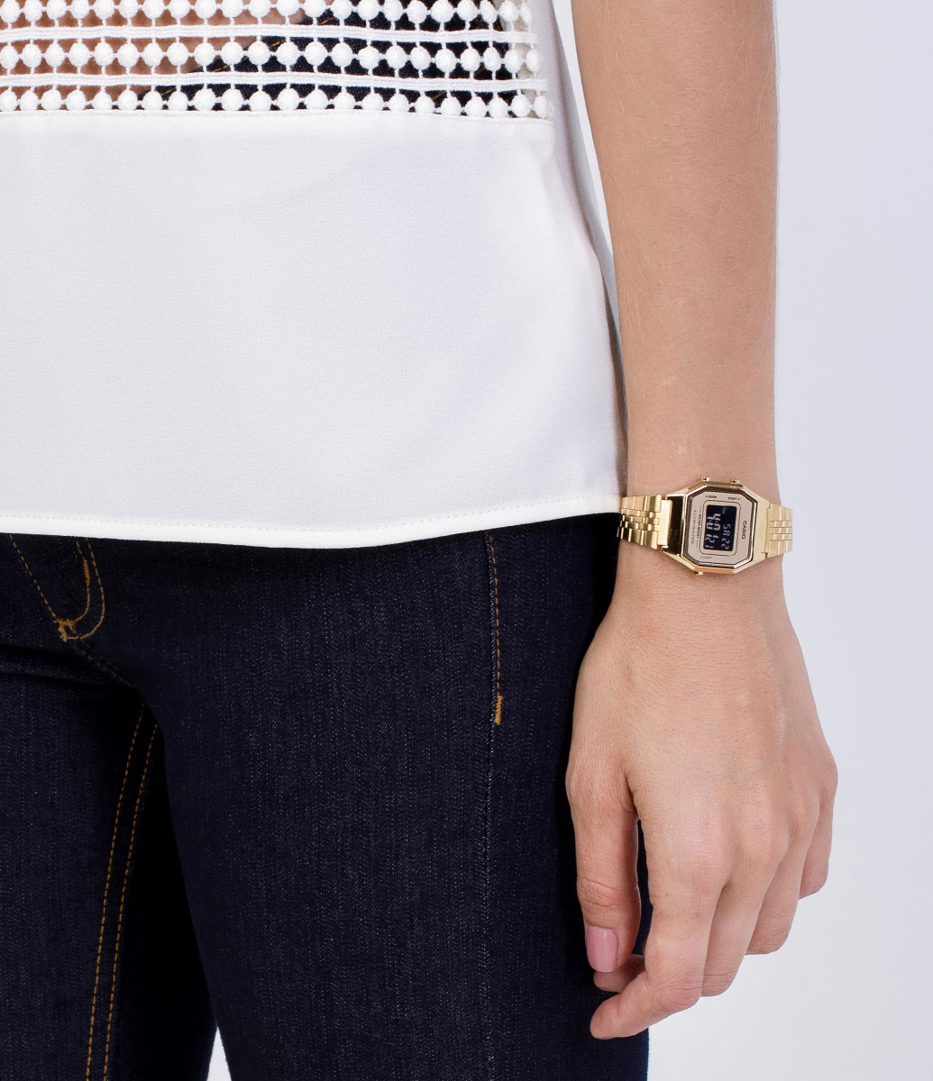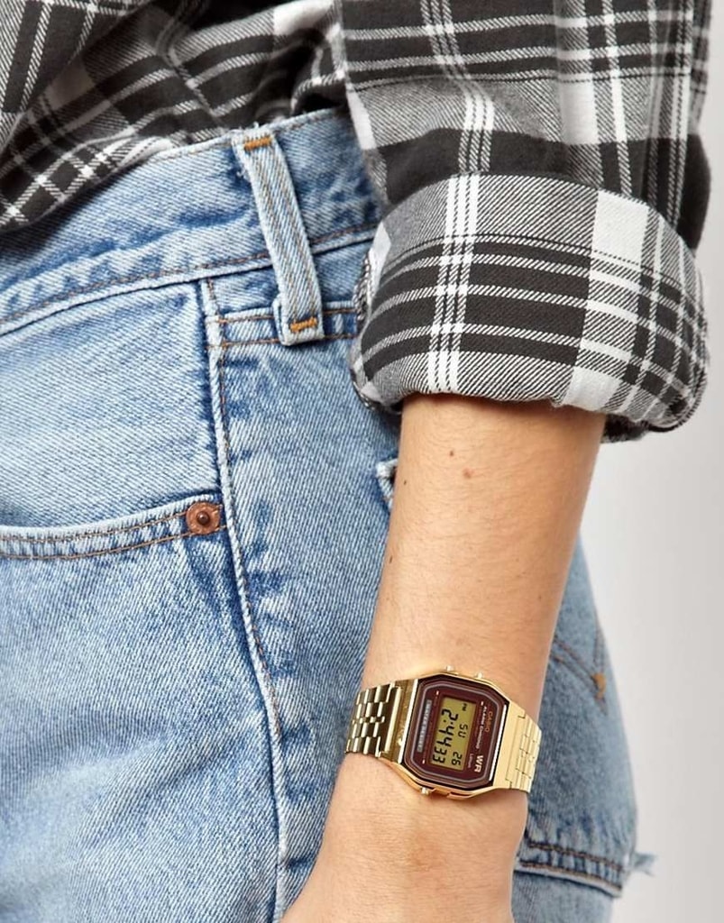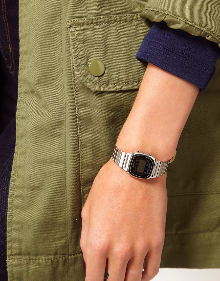 One of the most popular are durable Casio stainless steel bracelets. This material can be both smooth and with the effect of weaving.Ladies are free to choose for themselves your favorite spectacular version with a matte or iridescent surface of golden, black or silver color.