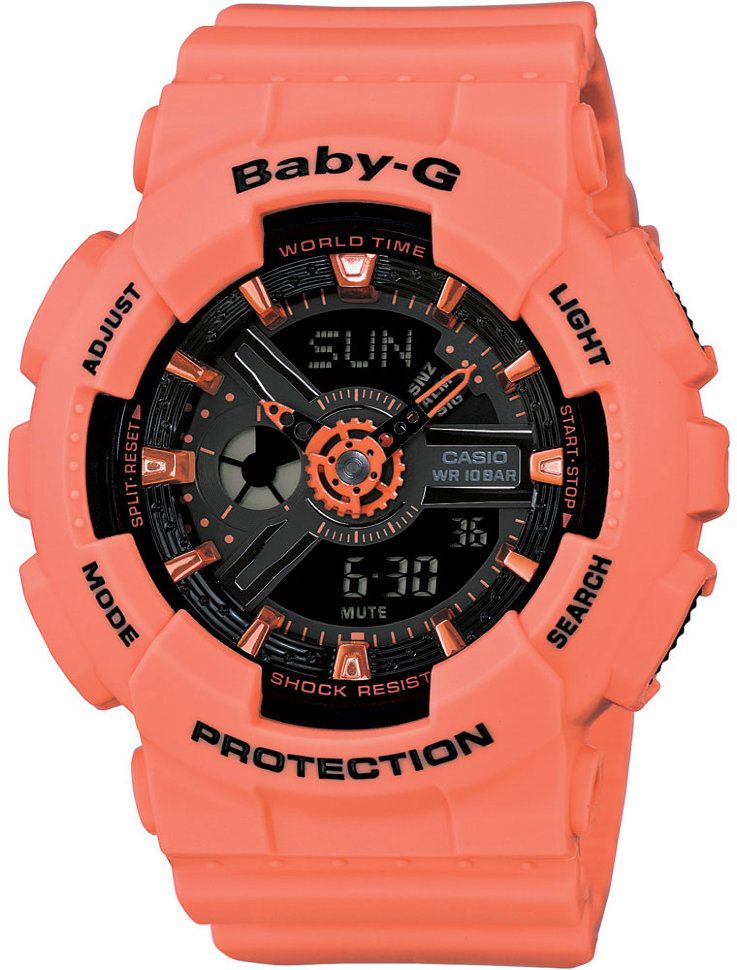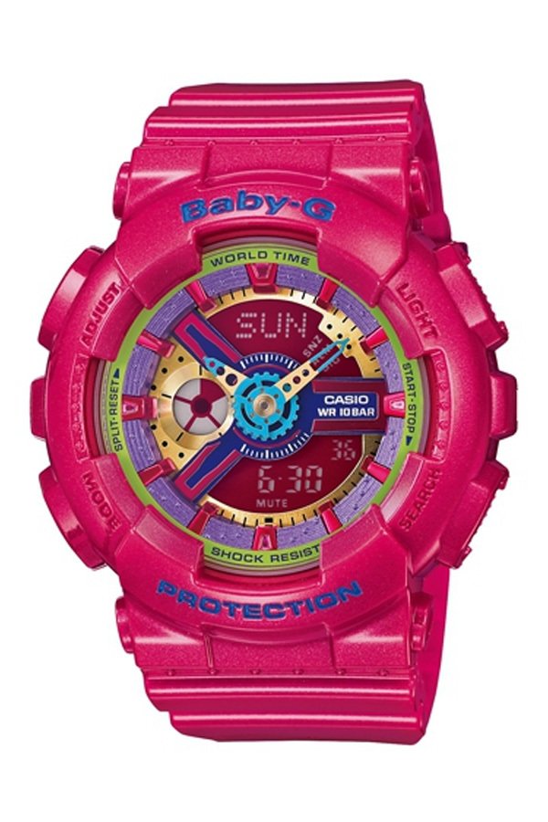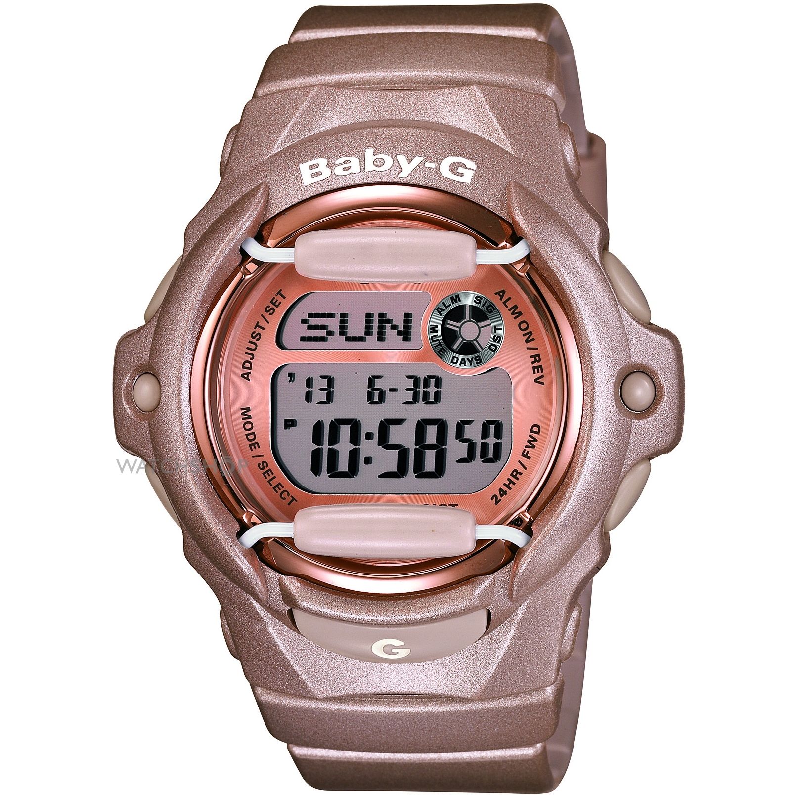 - Baby-G baby watches are no less popular.. Everything is attractive in them - from the color design to the protective properties of the case. Children's models are waterproof and they have special mechanisms that protect them from strong vibrations and damage upon impact. It should be noted and another interesting characteristic of these bright watch: they have an electroluminescent backlight, illuminating the entire dial.