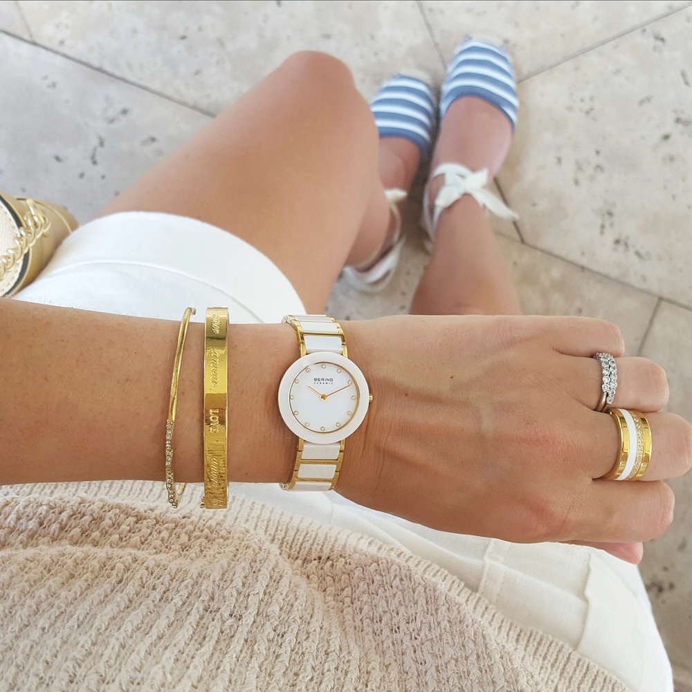 - Also, stylists recommend using the principle of bright contrast - a white bracelet looks interesting when there are many bright or dark colors in clothes.