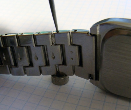 After the pin is pulled out, you can safely remove the extra link. After removing all the necessary links, fix the pin back - its right position will alert you with a deaf click. Often, jewelers and watchmakers do not recommend using an awl or a thin needle, suggesting instead using an ordinary toothpick, which has less effect on brittle metal.