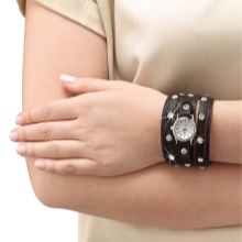 - The most common are wrist watches. In addition to the main body and dial, there are straps or bracelets. These parts can be made of silver or other material (for example, leather). Such accessories should be in the casket of every woman of fashion, as with their help you can emphasize elegant and fragile handles.