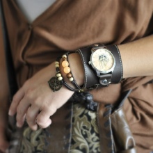 The wide bracelet can be made of genuine leather or natural silver. The second options are a little less common and are much more expensive, but their design will not leave indifferent any young lady.