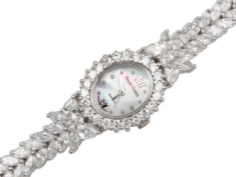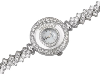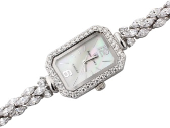 A silver watch with hard bracelets looks luxurious on a woman's wrist. These models rarely have a classic and minimalist design. As a rule, they are placed a variety of pebbles or patterned details. The unique charm is distinguished by openwork bracelets of shining metal, having small and light dials.