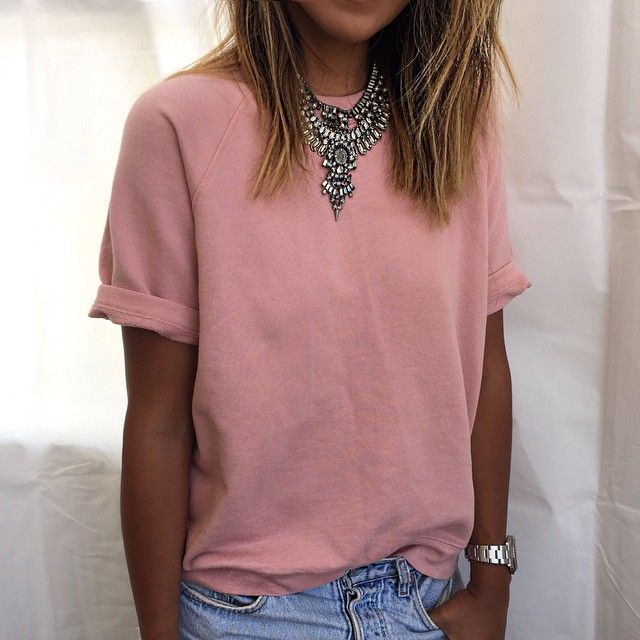 - Put on a pastel-colored T-shirt and blue jeans. Embellish a casual youth look with a heavy dark tone necklace and a jewelery watch with a silver bracelet.