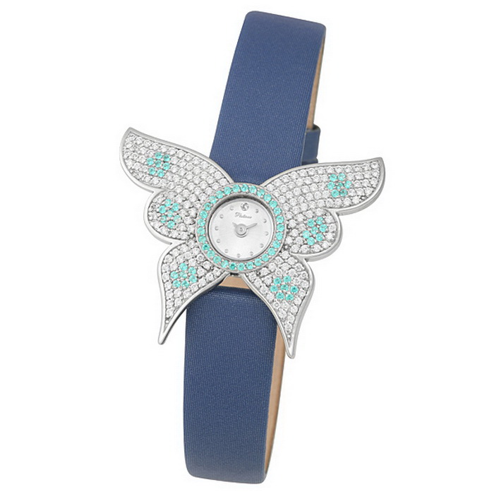 Solid products with lace bracelets and straps in different colors are produced by the Platinor brand. Under the name of this brand there are also very original watches in which dials have the most unexpected forms. For example, it can be women's accessories with a dial in the form of a large silver butterfly or a flower with small pebbles of different colors.
