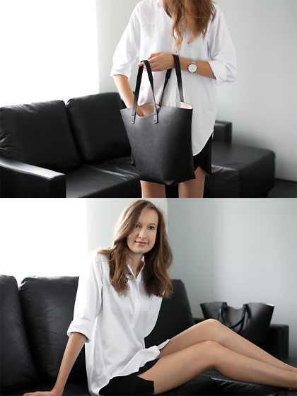 - Sexy and attractive on the girl will look the ensemble, composed of a light shirt, short denim shorts and silver-sharp pointed shoes with a small and wide heels. Complete the set with a silver watch, bracelets and a classic black bag made of patent leather.
