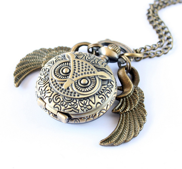- No less impressive and original look mechanical watch-pendants. Outwardly, such accessories look like a regular chain or a bracelet with a pendant, but the watch case with a dial acts as a pendant. Most often in such jewelery the dial is protected by a special beautiful silver lid. This is necessary in order not to accidentally break or scratch the product. Today in the shops you can find very interesting models, made in the form of an owl, key, compass, heart, etc.