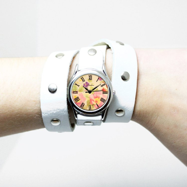 Another famous Russian brand, Chaika, offers modern women charming silver watches with bracelets decorated with multi-colored stones and leather straps in various shades.