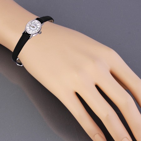Consumers could not fail to note the bright contrast of silver and leather straps. Such a kit looks expensive and solid. Many young ladies turn to such watch to complete the business and official images.