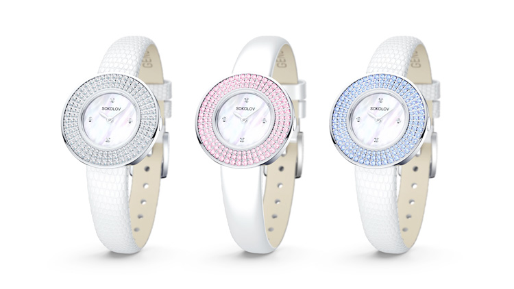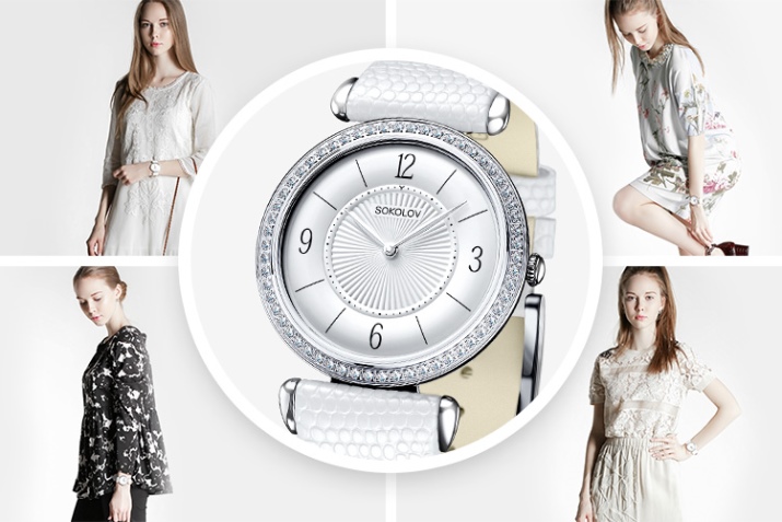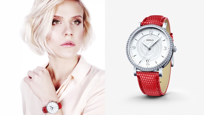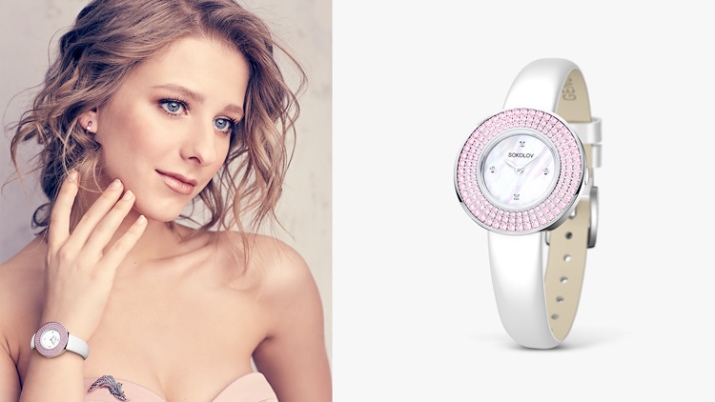The range of the company is represented by laconic models in a classic style, thin watch in vintage style and modern products with large dials, decorated with rhinestones.