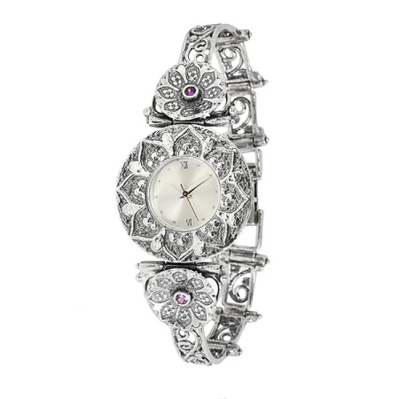 The straps inlaid with precious and semiprecious stones of different colors have a fantastic appearance. Silver watches with such details will cost customers a tidy sum.