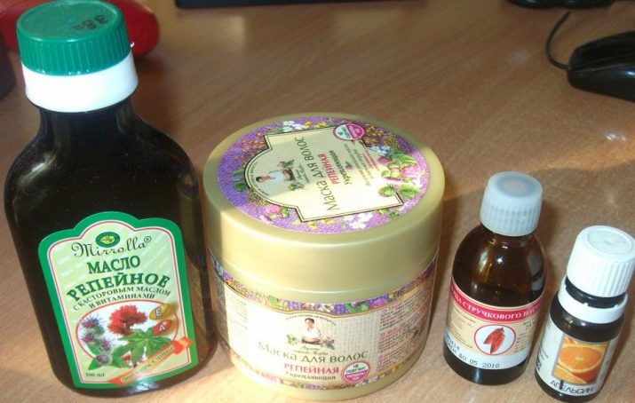 - Mask of castorca and burdock. Take castorc - 1 part, oil of burdock - 1 part. Both parts are mixed and this composition lubricates the roots of the bangs. This area is covered with a plastic cap and insulated scarf. After 2 hours, the composition can be washed off.