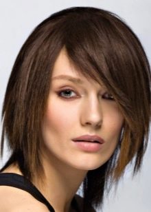 The advantage of such a bang is obvious - because of the non-standard structure, it can be adjusted by itself many times, choosing ways of styling hair.