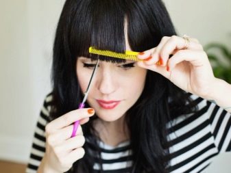 This option is more exacting to details and skillful hands. First you need to be patient and calm down - shaking hands are especially undesirable if you are going to make a straight bang without additional tools for leveling the hair.