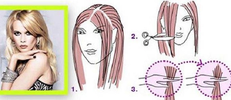 - We move cautiously, choosing small strands, from top to bottom (or vice versa) in the right direction, slightly increasing the bangs length with each transition. If desired, you can leave a little more length, then to adjust the result.