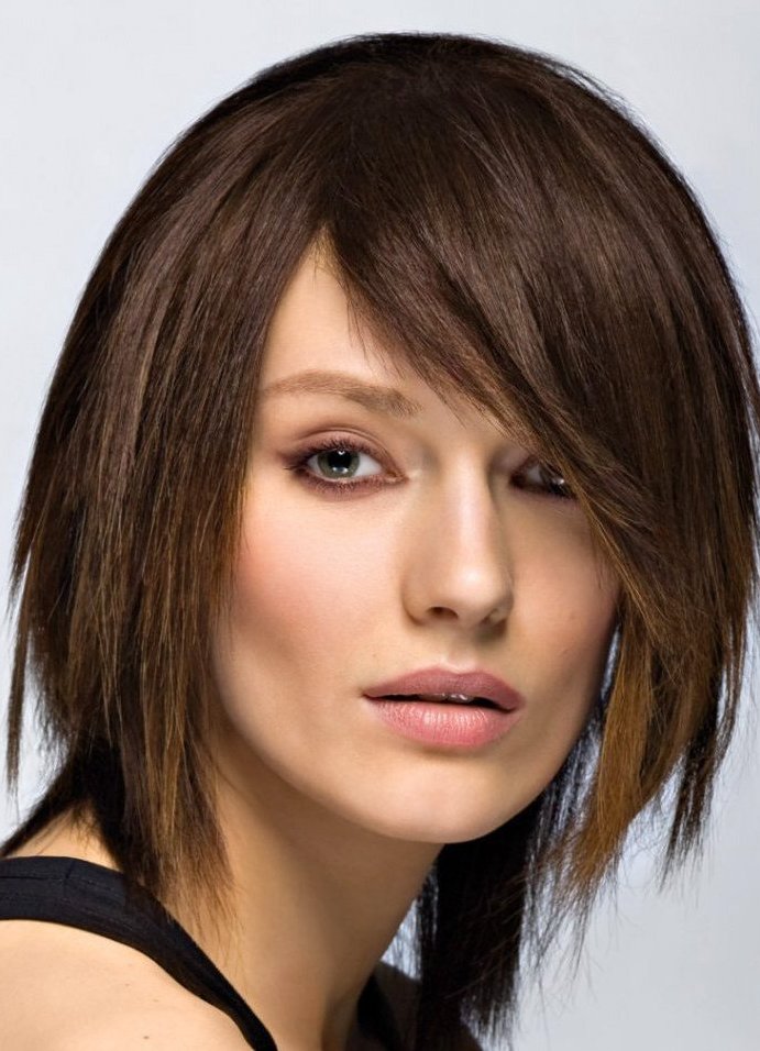 If the hair is naturally smooth and does not curl, a smooth bang along the eyebrow line will be successful, if you wish, you can also lower it to the eyelashes. For thick and wavy graduations will be the best option. It will give your hair a well-groomed and voluminous look, help increase or decrease the shape of the face and hide unwanted areas on it.