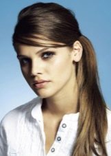 - Make the image fresh and become a little younger you can, combining the side bass with hair, gathered in a high tail.