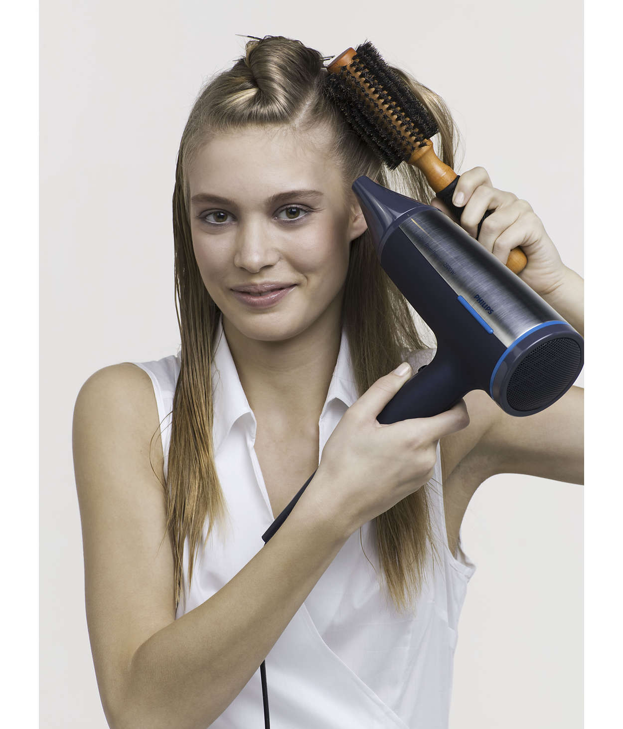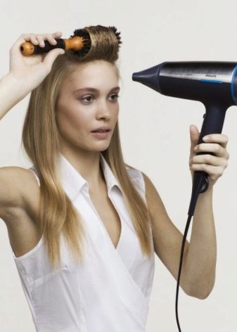 - Take a round comb and hair dryer. It is advisable to put on a special cone-shaped nozzle on the equipment - it will be able to direct hot air to a specific point at the right angle.