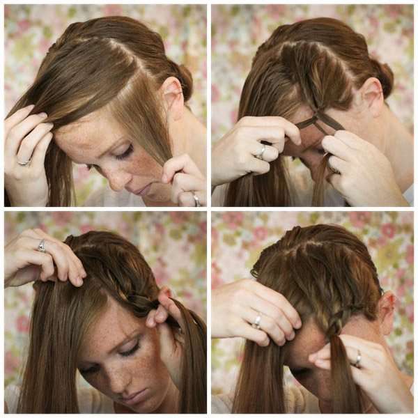 - First you need to start weaving a neat braid out of your bangs. In the process of spinning is worth taking from the bulk of the hair.