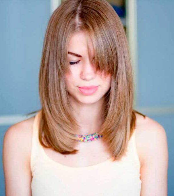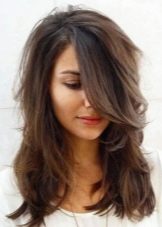 - Long-oblique, turning into the total length of the hair. This type of hair is suitable for women who do not want to drastically change their style. The variant is perfectly combined with long hair. It is quite easy to style your hair - just when drying a round comb, give your hair the desired shape. You can lay either on one side or on both, dividing the strands in half.