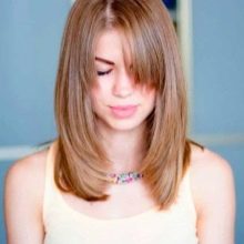 - With the same haircut will be a great combination of long bangs, smoothly turning into the main head of hair;