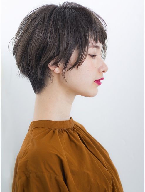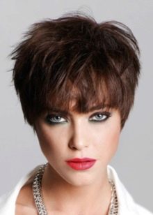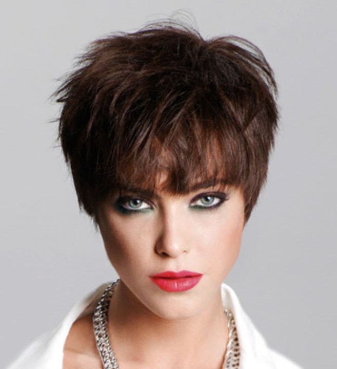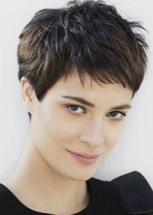 - Fashionable, well-known “Pixie” haircut is perfectly combined with a long oblique bang model;