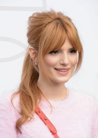 Bangs ladder is created by the method of imposing one strand on another. The result is a stepped view that looks very stylish and unusual. However, to maintain the attractiveness of the image, it is required to regularly update the edges of such bangs.