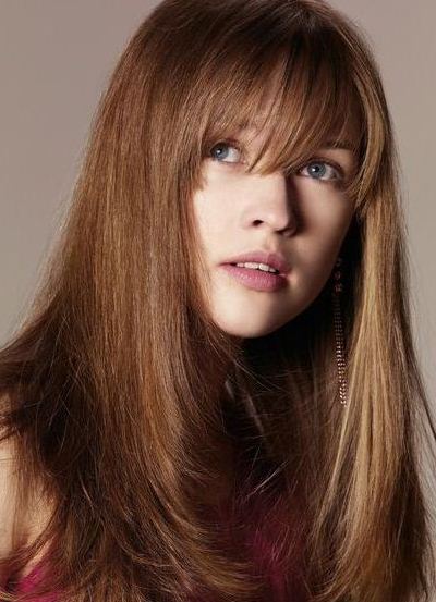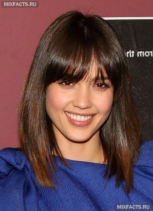 - straight cut haircut and straight bangs are a great choice for long hair;