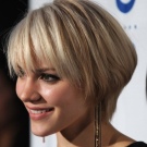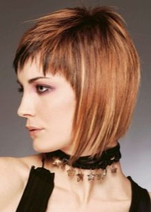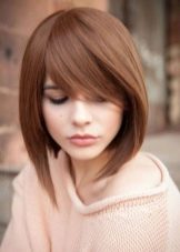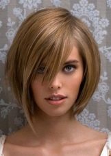 Such a car will be quite voluminous, even on fine-grained hair and non-breathable hair. It fits bangs of any length: both smooth and oblique. The advantage of oblique bangs in its elegance and feminine look. It gives the look a great "playfulness." The hairstyle is easily styled with a hair dryer, and individual strands are accentuated with mousse or gel.