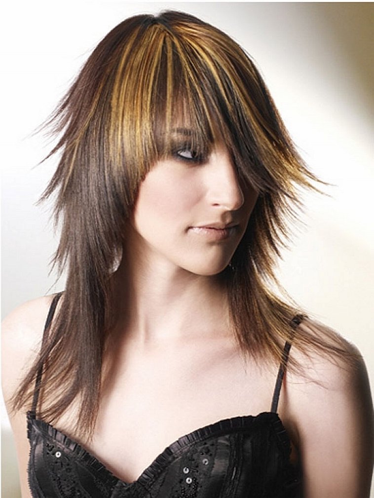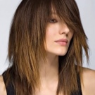 Long torn bangs - a win-win haircut that fits almost any type. Especially combined with "stepped" haircuts and highlighted graduated strands. Gives the image a neat natural carelessness. Preferred most often among Hollywood actresses (Charlize Theron, Kirsten Dunst).