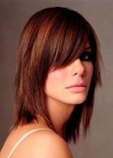 A successful combination of graded bangs with straightened unassembled hair minimum length to the shoulders. She manages to combine with all sorts of hairstyles.