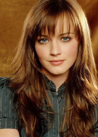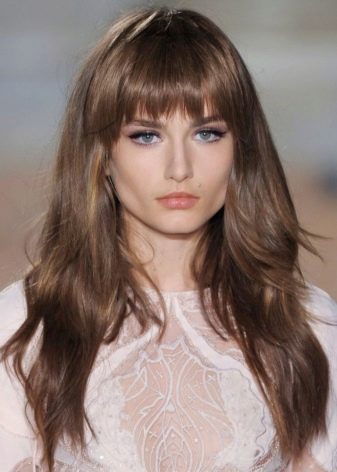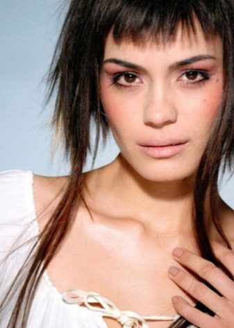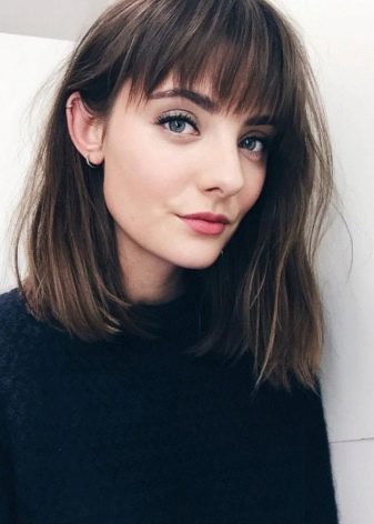 If you want to try this style on yourself in the presence of thick bangs or lack thereof, you can start with an elongated version. The new image will give the image a playful lightness and charm inherent in young ladies. Moreover, with the help of such bangs, it is easy to correct the existing shortcomings of the exterior and it is advantageous to draw up the merits.