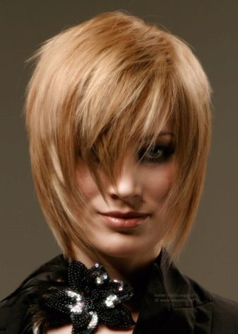 Trendy, trendy haircut element. Creative and the most successful solution with thick hair and with insufficient volume.