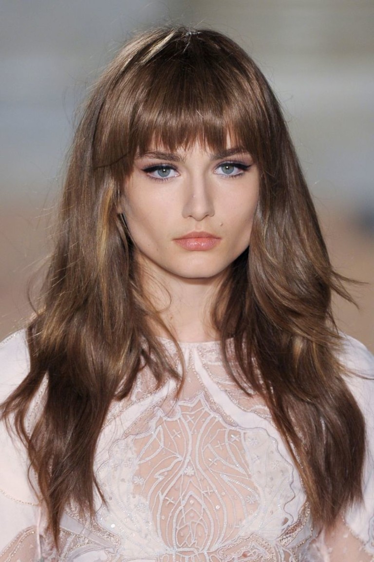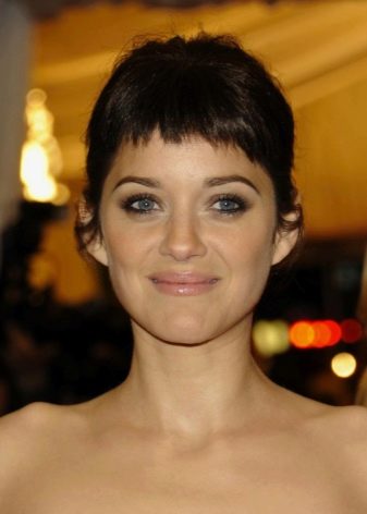 Straight bangs of such a structure successfully hide the low forehead, visually slightly pulling the face. The angular face also does not hurt to focus on the eyes through irregular bangs. In this way, some celebrities who do not have a perfect oval look impressive (Penelope Cruz, Marion Cotillard).