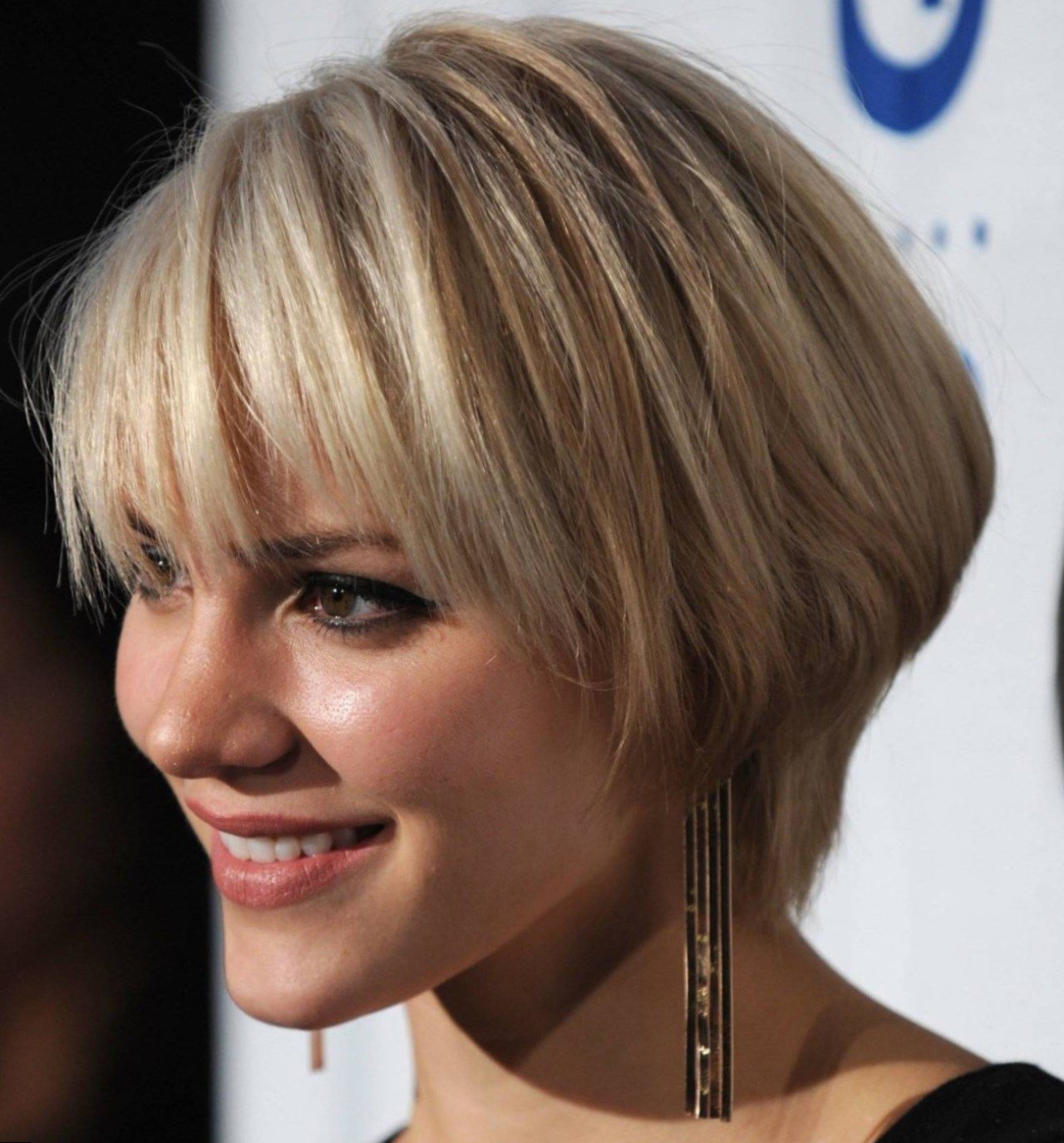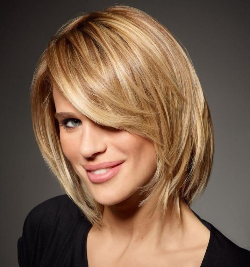 A square face will be “softened” by a long, milled bang below the cheekbone line. She looks wonderful with short and long hair (like Pink and Reese Witherspoon).