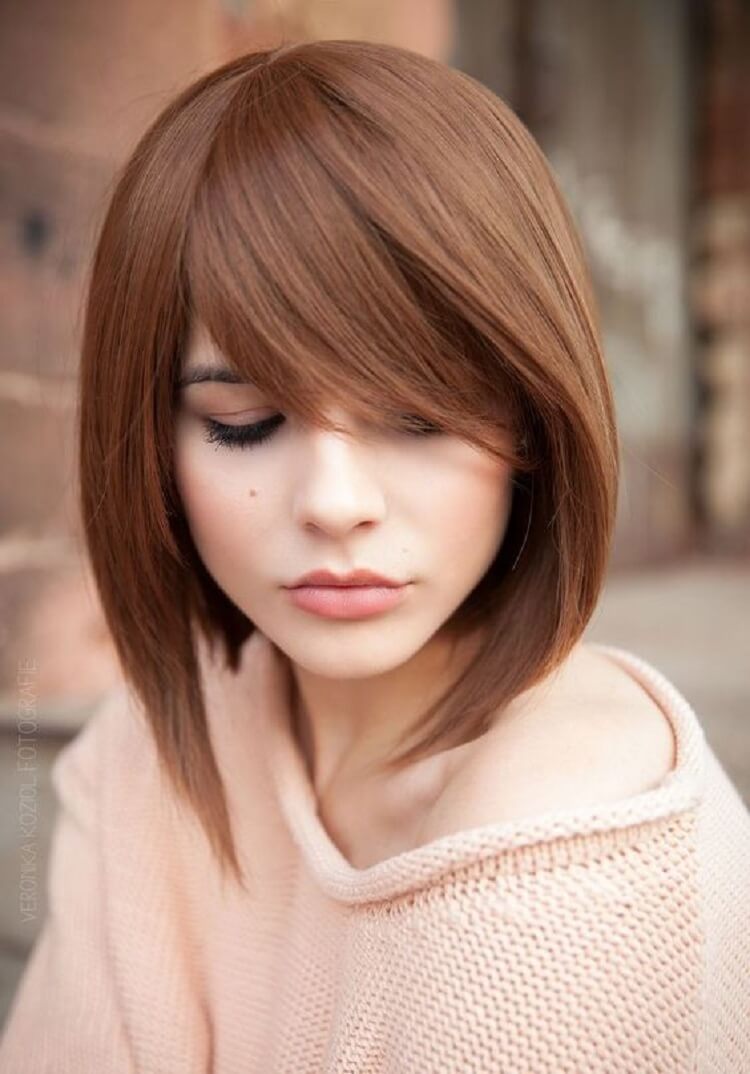 Skillfully trimmed fringe visually hides the imperfections of the face visually, draws attention to the beauty of the eyes, giving them brightness and expressiveness. This form is preferred by young people, but they wear everything except the owners of curly hair. Although they can afford an oblique bang, acquiring an iron for its “taming”.