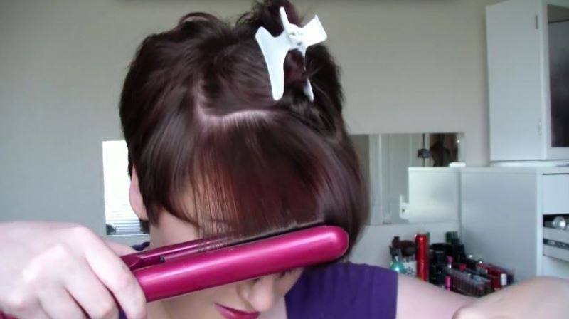 In such a simple way, you can change the image even without a visit to the hairdresser, regardless of whether the hair is medium or long for the client. Bangs will be framed attractively and creatively.