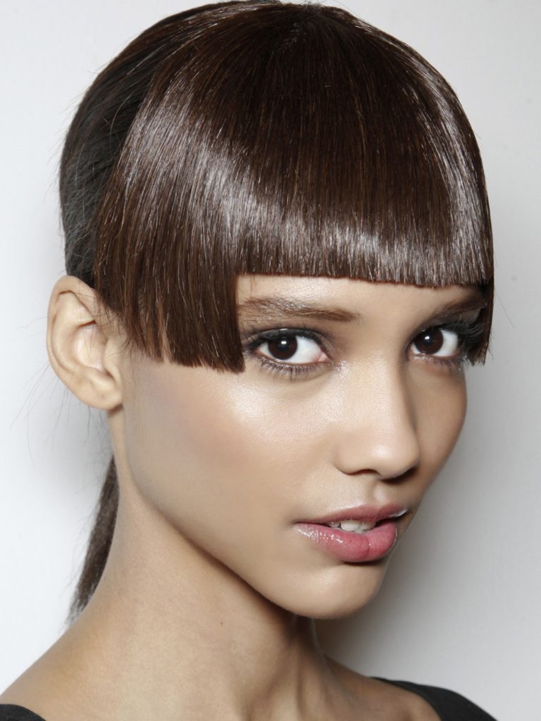 Haircut bangs on the oblique
