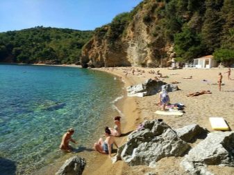 The water here is very clean, fairly warm and calm, the slope to the water is smooth, as well as the entrance to the sea. The beach is surrounded by green trees and shrubs.