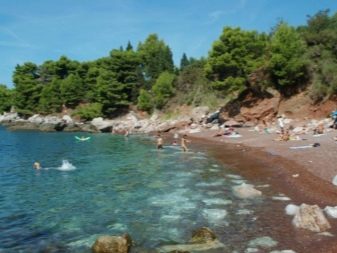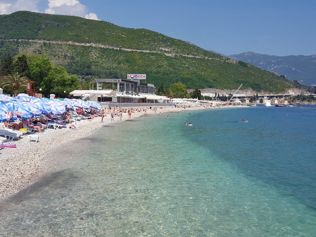 As on the rest of the beaches of Budva, the water here is exceptionally clear and calm, warm, the coast smoothly flows into the sea, the stones are so pleasant that you can walk barefoot in the water.