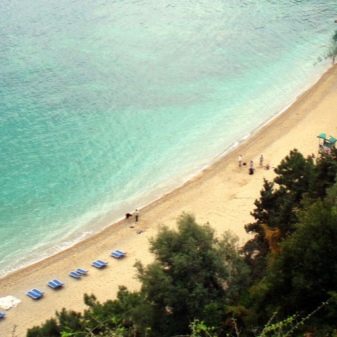 The beach has a huge number of sun loungers, which cost 20 euros for one person, the entrance to the beach itself is free. In addition to clear water and a great view of the open sea, there is a small green forest behind the beach - it seems as if you are lying somewhere far away on a desert island among palm trees and untouched nature.