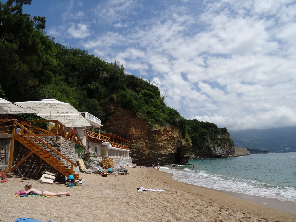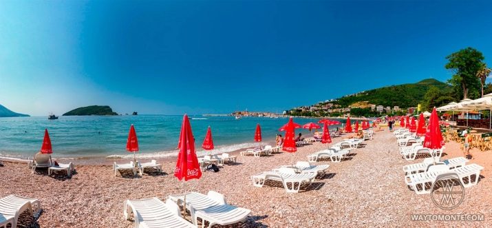 The most popular and most expensive beach in Budva. It is located near the Old Town - about 10-15 minutes walk to it. Pebble beach, the water is very clean, clear and gives a pleasant azure and emerald shades.