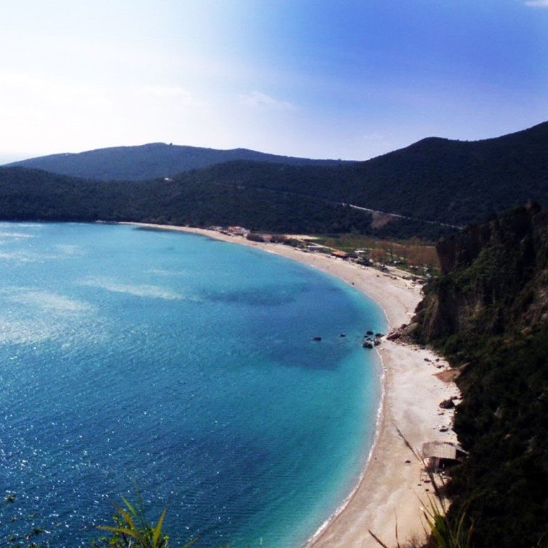 Well-equipped beach in the city with a cafe, restaurant and a fairly large number of sun beds. But the water here is the usual bluish color, no cherished blueness and azure. The beach is very small - about 150 meters, most of which is occupied by the nearby cafes and walls of the Citadel, and there are practically no places for towels. In the summer season, guests at the nearest hotels come to this beach, and therefore there are no places for other guests there.