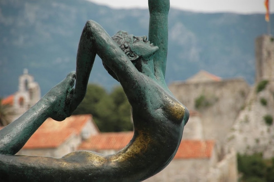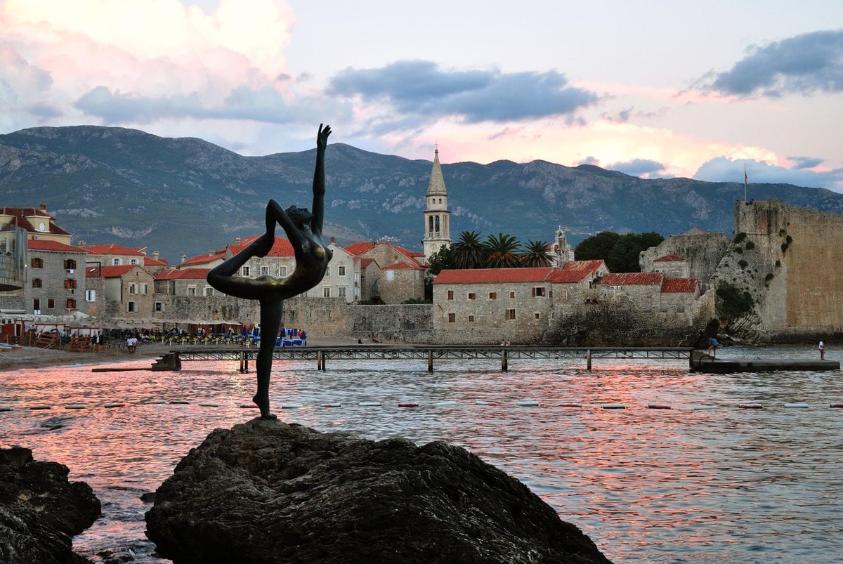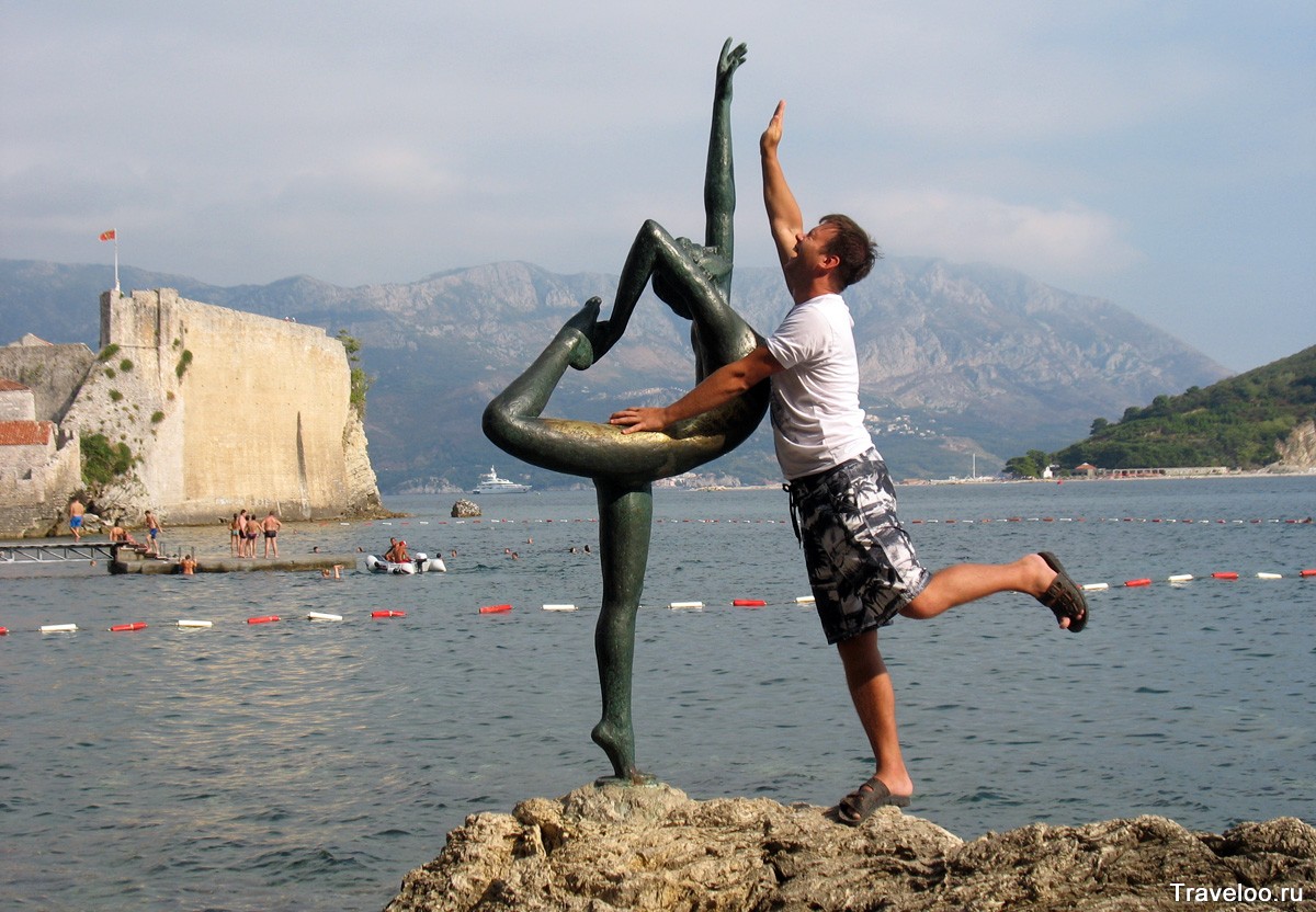 Another famous Budva sight. The bronze figure, as if floating above the sea waves, is located on the territory of the Mogren beach, which is popular with holidaymakers. It is the unofficial symbol of Budva, symbolizes ease and loyalty, it can often be found on souvenirs, photographic cards and advertising posters.