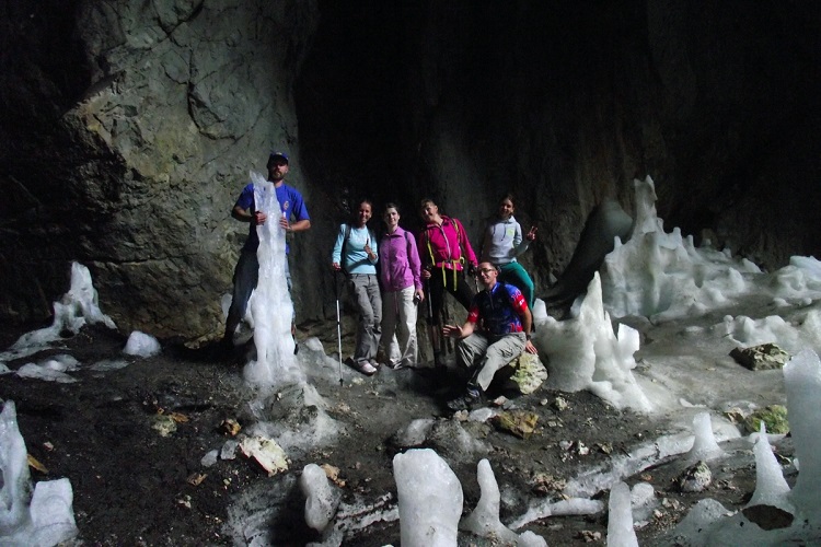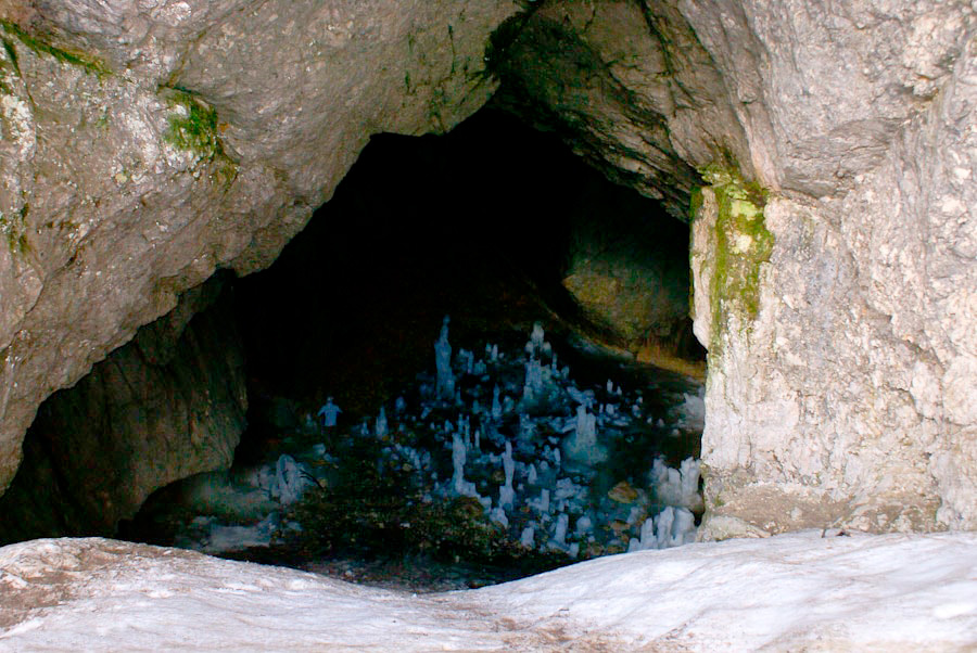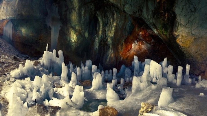 The cave consists of several corridors with a total length of about 100 meters, the largest is a hall 40 meters long and 20 meters wide. The cave is constantly dripping with the purest icy water that can be collected in a flask on the way back.