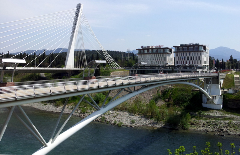 - One of the main attractions of the capital is the Millennium Bridge. It is a road from the southern part of the city to the north. In the evening, he is especially beautiful when the lights turn on, and he lights up hundreds of lights. Nearby there is a cute Moscow bridge, which is a pedestrian. Next to him is the monument to Vysotsky. Both are a gift from the Russian people to Montenegrin.