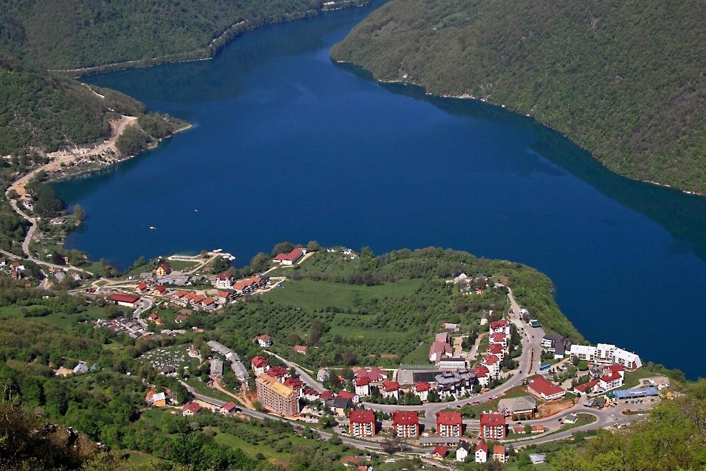 Pluzine is another town with a population of 1,500 people, it is famous for its hydroelectric power station and the local reservoir. The locality was chosen by lovers of active rest, from here begin rafting down the rivers Tara and Piva. Tara is a part of the protected zone of Durmitor. This river flows between picturesque cliffs and periodically falls waterfalls. The water temperature does not rise above + 15 ° C, it is considered to be drinking. In Europe, it is the largest such waterway, the water from which does not require purification.