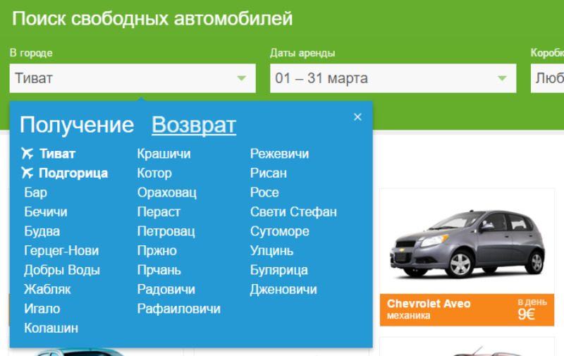 If you are a very independent traveler, it may be worthwhile to rent a car. Thanks to her, you can see any, even the most remote sights at any time convenient for you. As in the case of a taxi, this service can be ordered in advance using the website of a company, but the issue can also be resolved on the spot, since the corresponding service is provided even by the Tivat airport itself.