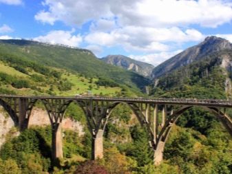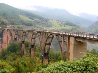 - Bridge Dzhurdzhevicha. The majestic building, the author of which is Miyat Troyanovich. It ranks first in length, which is 366 meters in Europe. Its height is 172 meters, it connects the two banks of the canyon. Huge arches, built of solid concrete, look majestically and fascinating against the background of the canyon.